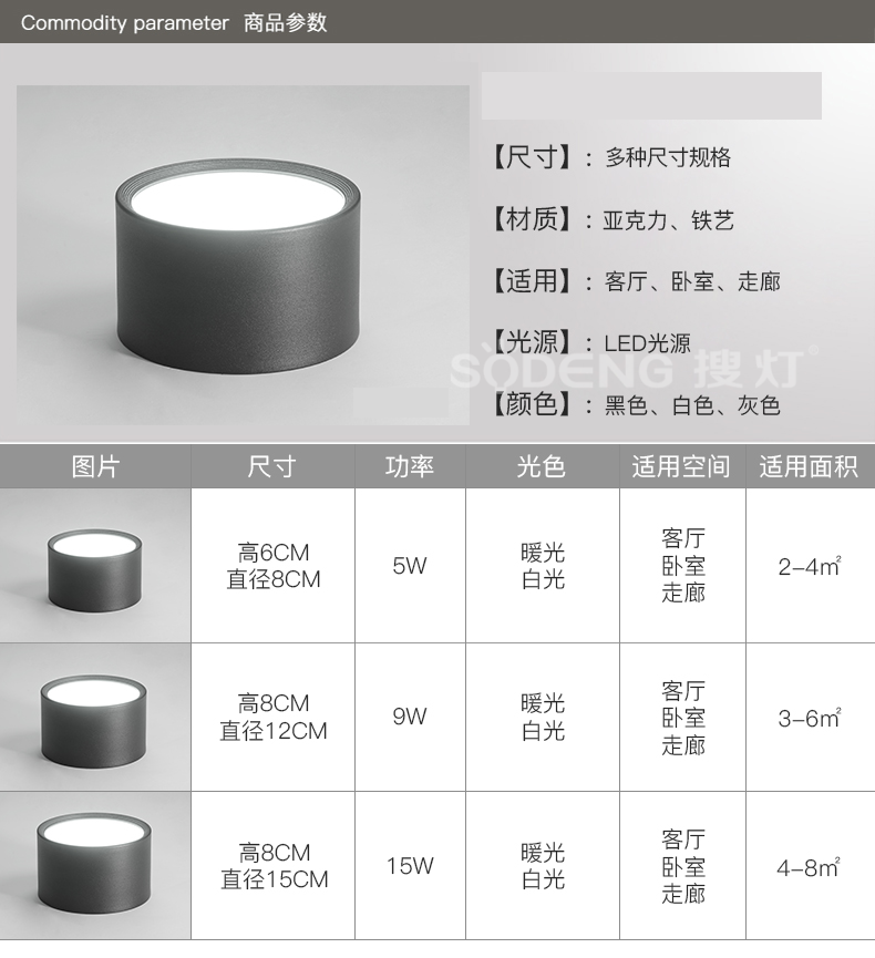 黑色/中性光/80*60MM*5W