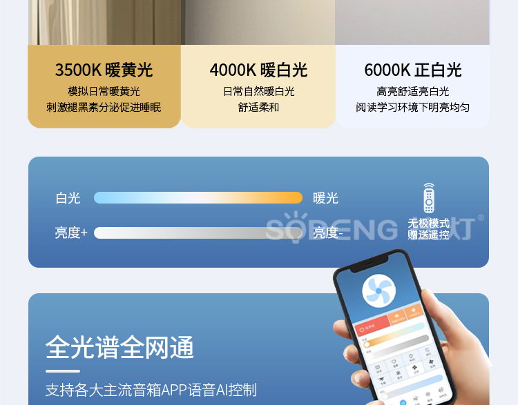 胡桃木色450*300*H50mm/44W三色变光