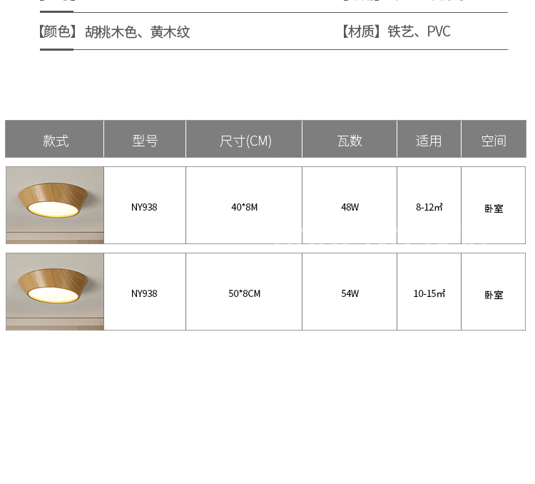 胡桃木色∅500*H80mm/54W三色变光